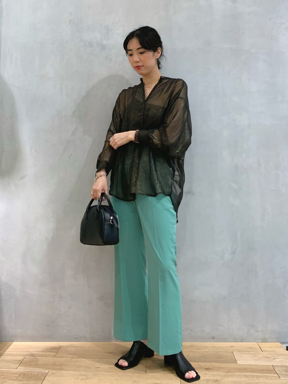 おさやのシャツ/ブラウス「ハクプリントスタンドカラードルマンシャツ」を使ったコーディネート