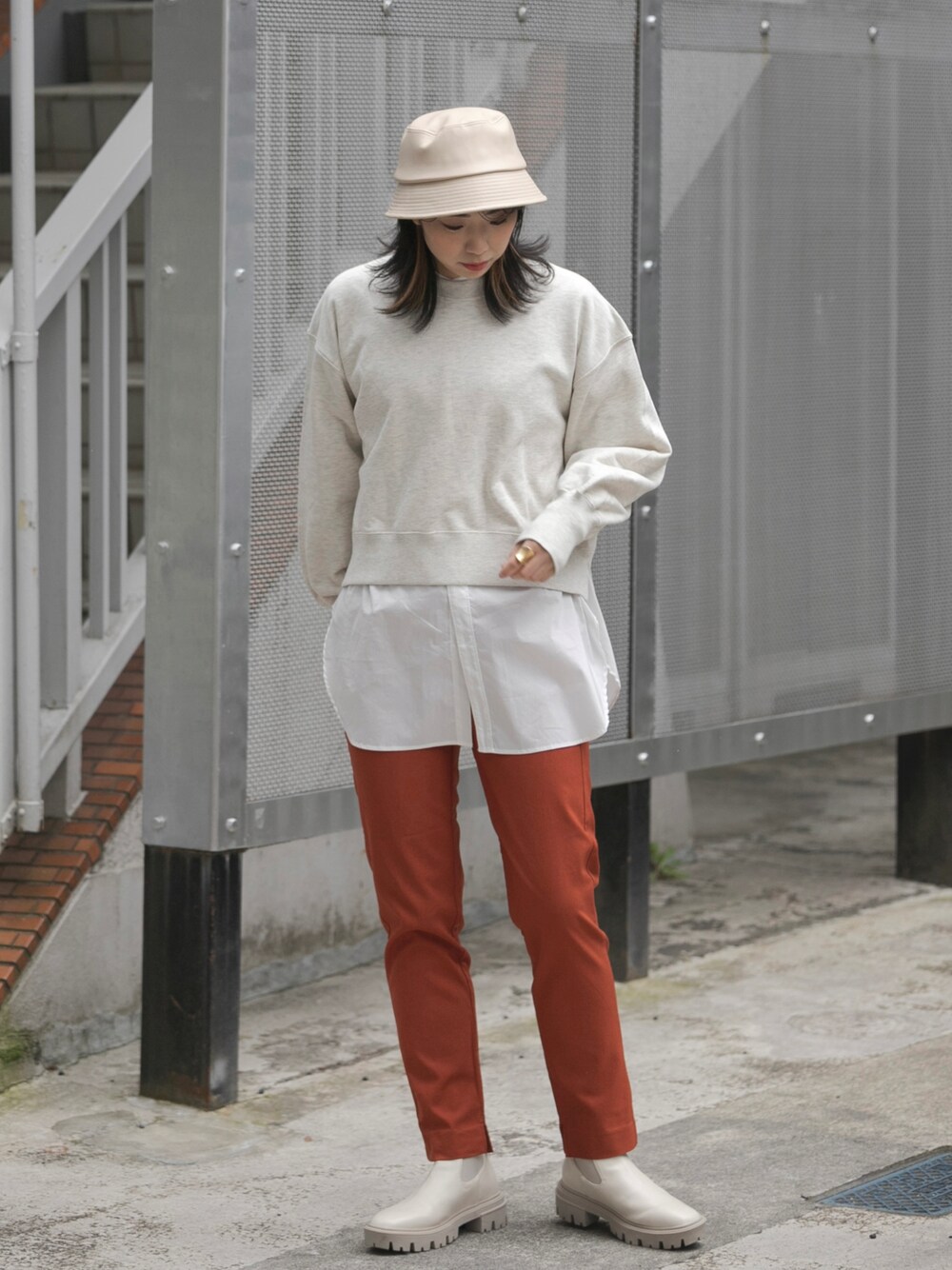 おさやのスウェット「ルーズショートスウェットシャツ」を使ったコーディネート