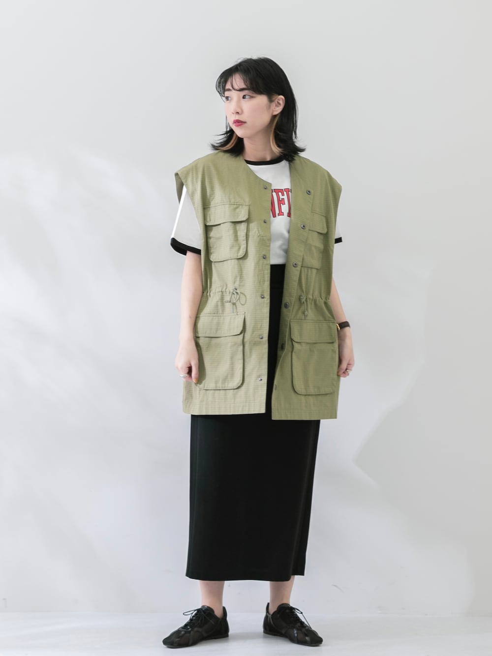 おさやのベスト「『ユニセックス』マルチポケットミリタリーベスト」を使ったコーディネート