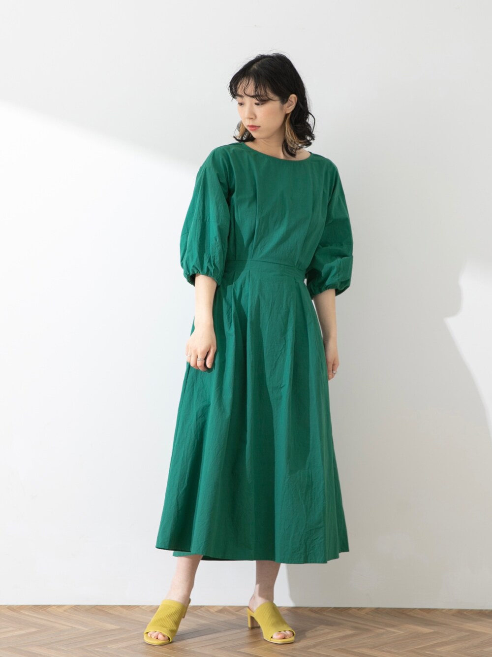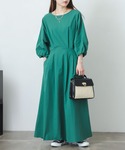 おさやのワンピース「ボリュームスリーブウエストタックワンピース」を使ったコーディネート