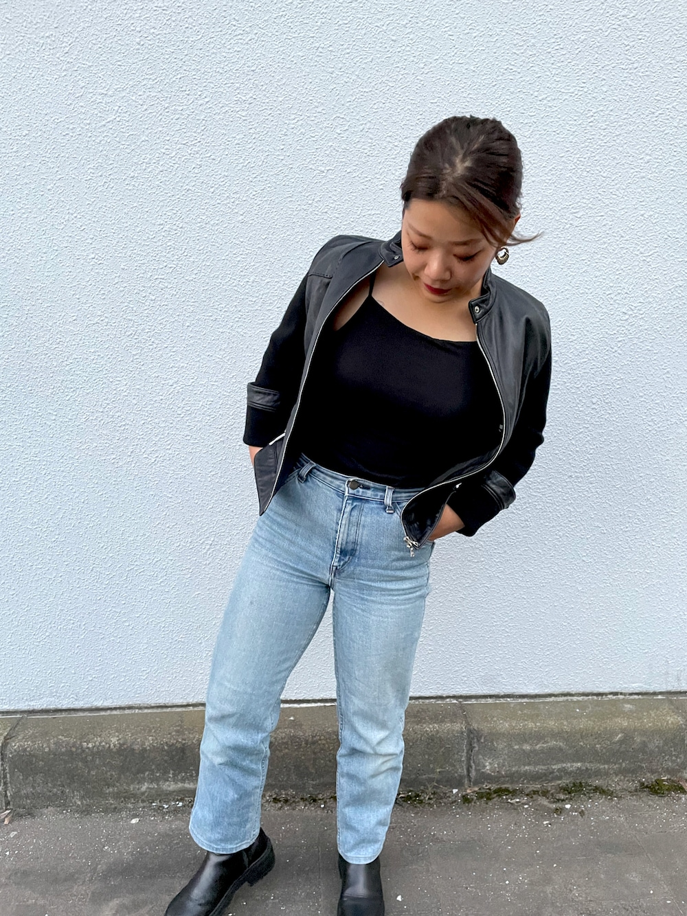 今日はカッコ良く決めてみた🖤 ライダースって最高にカッコイイしお洒落😎👍 ショートブーツ合わせが最高👏