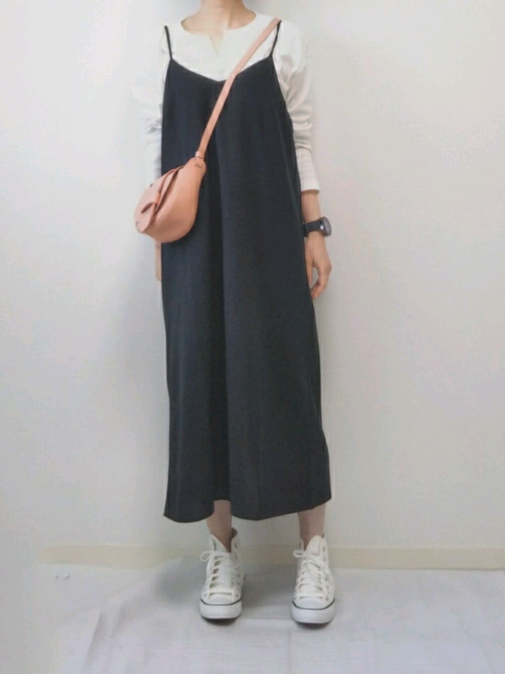 おはようございます。 キャミワンピはワッフルカットソーとセット商品です。 グレーとブラック2色があり、両方試着して、ブラックのほうがインナーを選ばずに着られそうかなと判断してブラックにしました☺️ ボーダーやストライプなどの柄と合わせやすい無地のキャミワンピは着回し力が高く、しかも、セールで半額になっていて、最近購入した物で一番のお得品だと思います。 MINISOで購入したショルダーバッグは、今日も驚き価格の200円😲スマホ、ハンカチ、ハンドクリームが余裕で入ります。 いつもご覧いただいてありがとうございます🙇