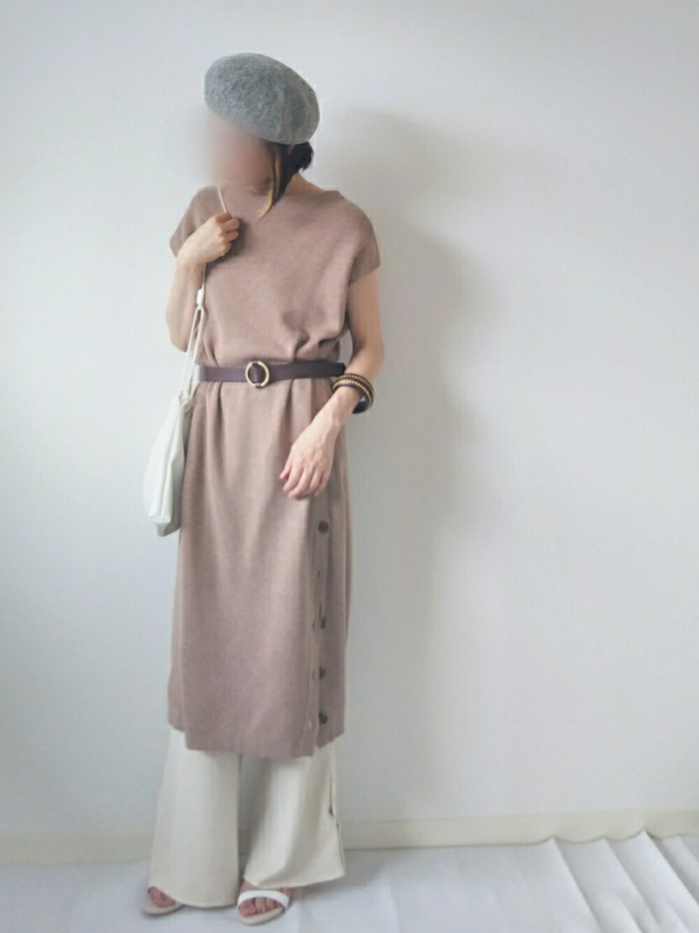 ご覧いただいてありがとうございます。 今日は気温が低めだったので、 アクリル100%で生地厚めのワンピース とワッフルパンツにしました。 Ludic Parkのワンピースはサイドボタンが飾りではない外れるボタンなのでレイヤードしやすいです。 ボタンを締めて1枚でも着られるので990円はかなりお買得でした。 小物は昨日とほぼ同じ物です。 バングルと同じ配色のベルトと、ベレー帽をプラスしてシンプルすぎないようにしました。