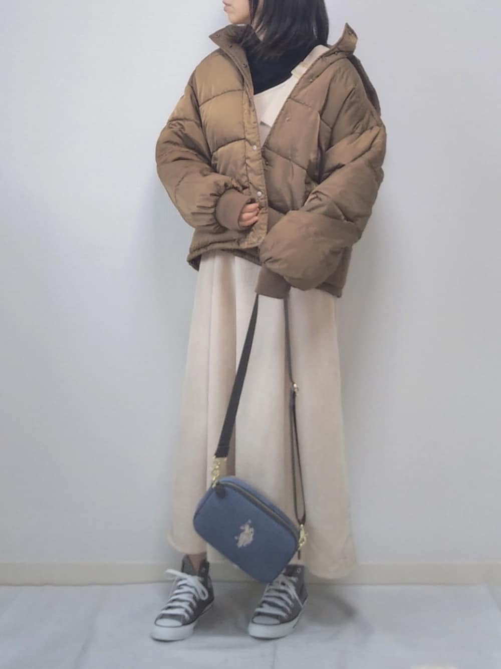 おはようございます。 ▷Pair Pair コーデュロイワンショル風ジャンスカ 肩紐を外すとワンショルダーにもなるワンピース。裾に向かって広がりがある可愛らしいデザインなので、ラインが見えるように earthのドロップショルダーブルゾンと合わせます。 👜 ▷U.S.POLO ASSN コーデュロイクロスボディショルダーバッグ 丸みのあるフォルムでワンピースコーデにもぴったり。 ドロップショルダーのアウターと合わせることで、全体的に女性らしいシルエットになるように意識しました。 ご覧いただいてありがとうございます。