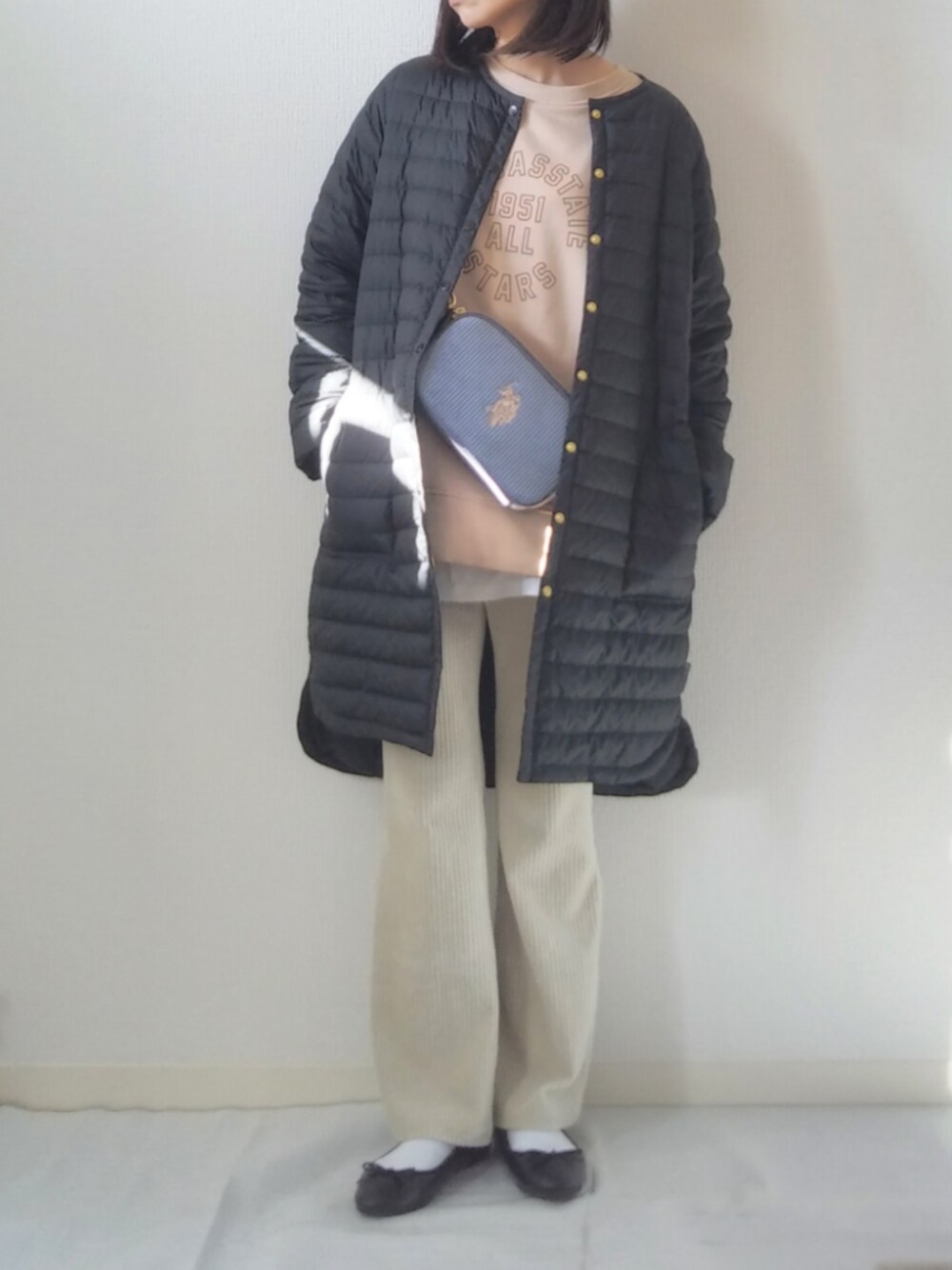 おはようございます。 Smansa Mos2 blueのロゴスウェットはオーガニックコットンで肌触りも◎ 店頭で半額で購入しました。 小さく畳めるTraditional Weatherwearのノーカラーロングコートはやっぱり便利♪車に乗ることが多いので付属の収納袋に畳んで置いておけます。 U.S.POLOのコーデュロイショルダーバッグは淡いカラーにも馴染みの良いグレーでお気に入り♪ ご覧いただきましてありがとうございます。