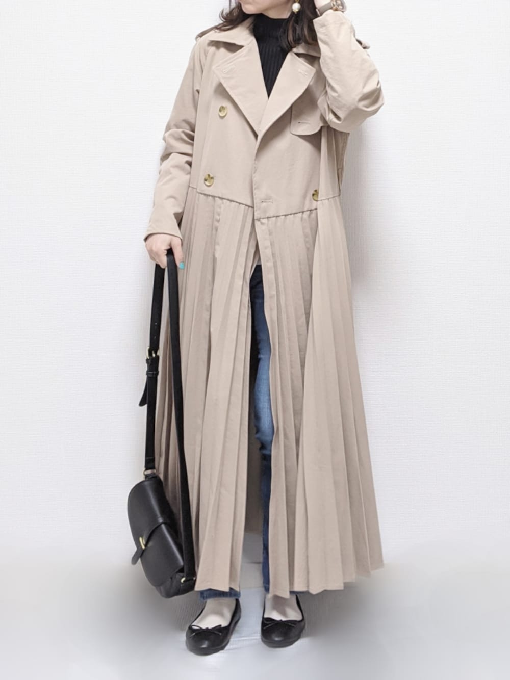 yume のトレンチコート「プリーツトレンチコート」を使ったコーディネート