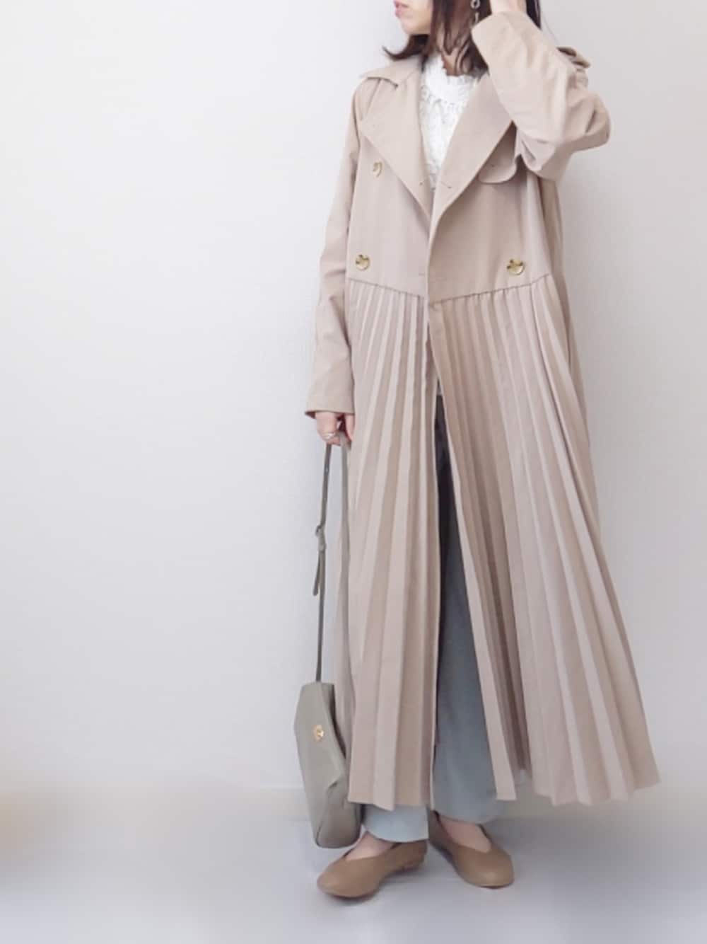 yume のトレンチコート「プリーツトレンチコート」を使ったコーディネート