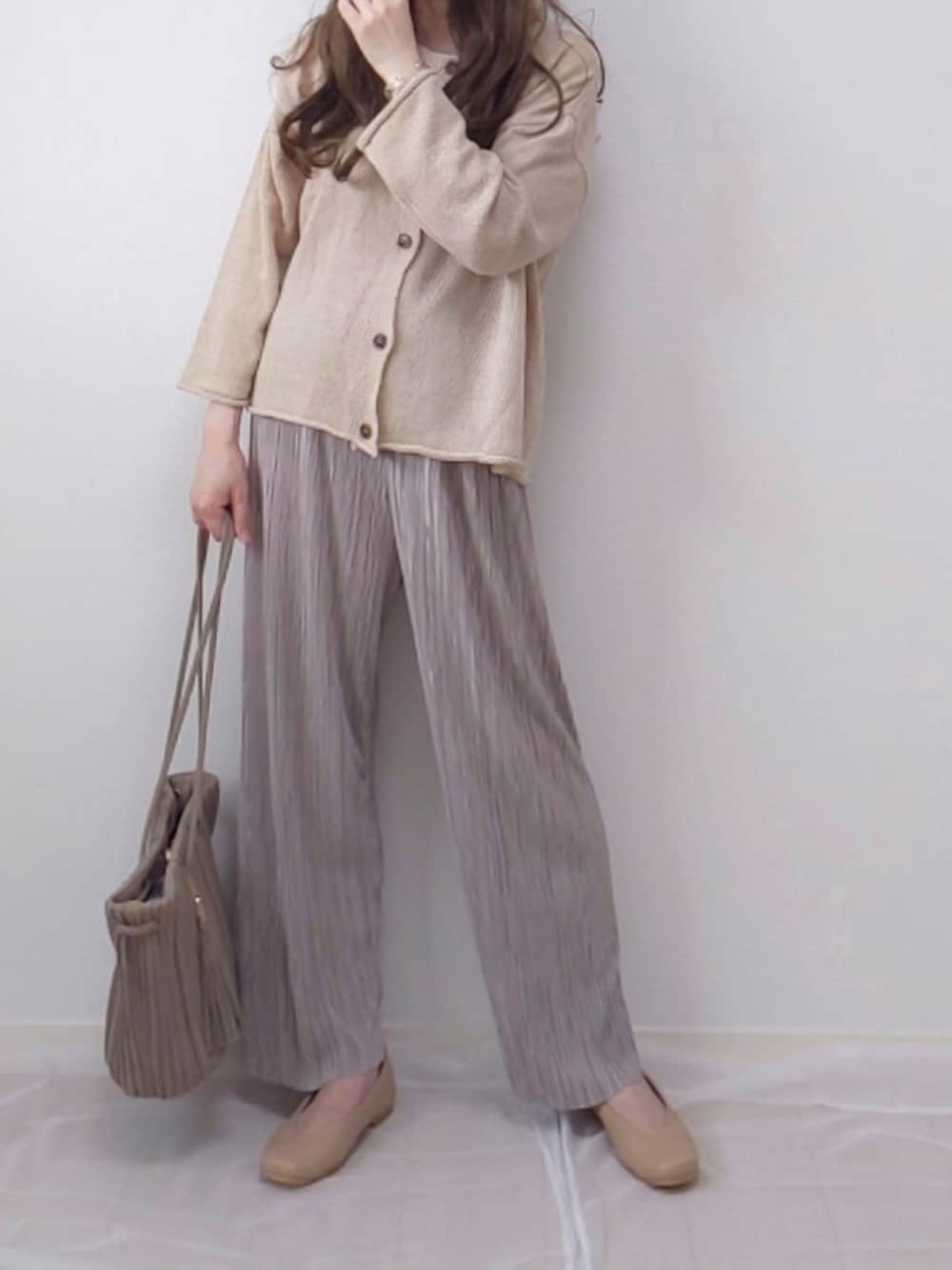 9月もよろしくお願いいたします。 上下DHOLICさん☺︎ ワントーンコーデ。 ︎︎︎︎☑︎2WAYボタンカーディガン 前後2WAYで着用できます♩ アクリル素材で裾や袖がクルンとしたところもかわいい🤍 ︎︎︎︎☑︎グロッシープリーツパンツ 光沢のある生地に細かいプリーツで上品✨ 落ち感のある生地感なので体のラインも拾わずゆるっと履けます◡̈* フォルダインありがとうございます。 Instagram➠yume___to