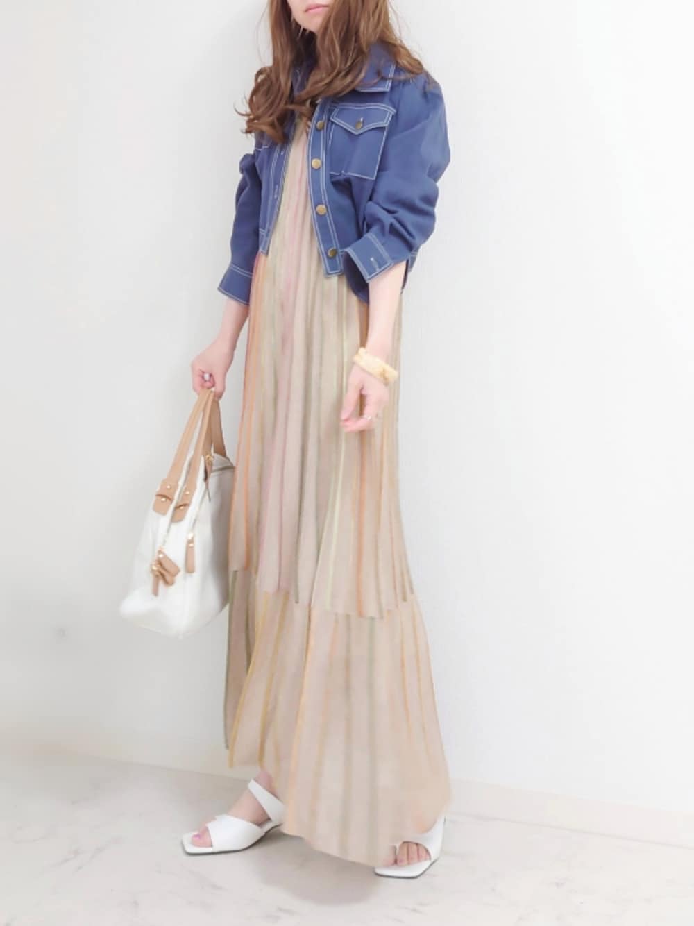 ロングワンピースに コンパクトなジャケットと合わせて 縦のラインを意識したコーディネートにしました。 LAGUNAMOONさんの レインボーカラーの糸がアクセントになった ニットワンピース。 薄手のニット生地でシアー感があって とっても綺麗なデザインです。 Jewelobeさんのセットアップアイテムの ジャケットを単品着回し♩ ネイビーにホワイトのステッチがかわいいジャケットです🤍 小物はホワイトでまとめて春夏らしく⋆ ・ Instagram ٭❀* yume__to