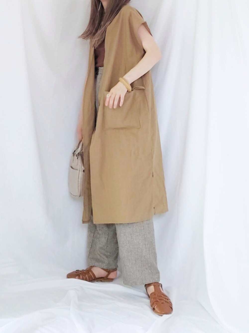 ベージュ×ブラウン♡ᐝ‴ 好きな組み合わせに。 DHOLICさんのロングベストがかわいい⸝⸝ リネン混で季節感のある素材に ロング丈が好みすぎます🤍 トラウザーパンツと合わせて リラックス感のある大人コーデに。 Instagram>>>>yume___to