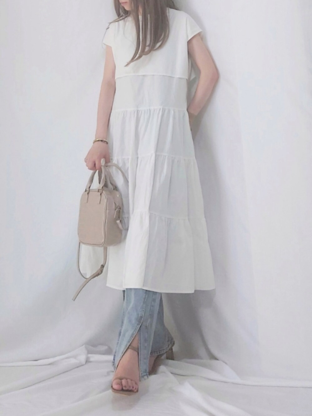 ap retroさんの レイヤーティアードワンピース。 セットアップデザインが1枚で完成✽ 今回はお気に入りのスリットデニムと 合わせています。 ap retroさん本日ZOZOTOWNクーポン発行中です。 Instagram>>>>yume___to