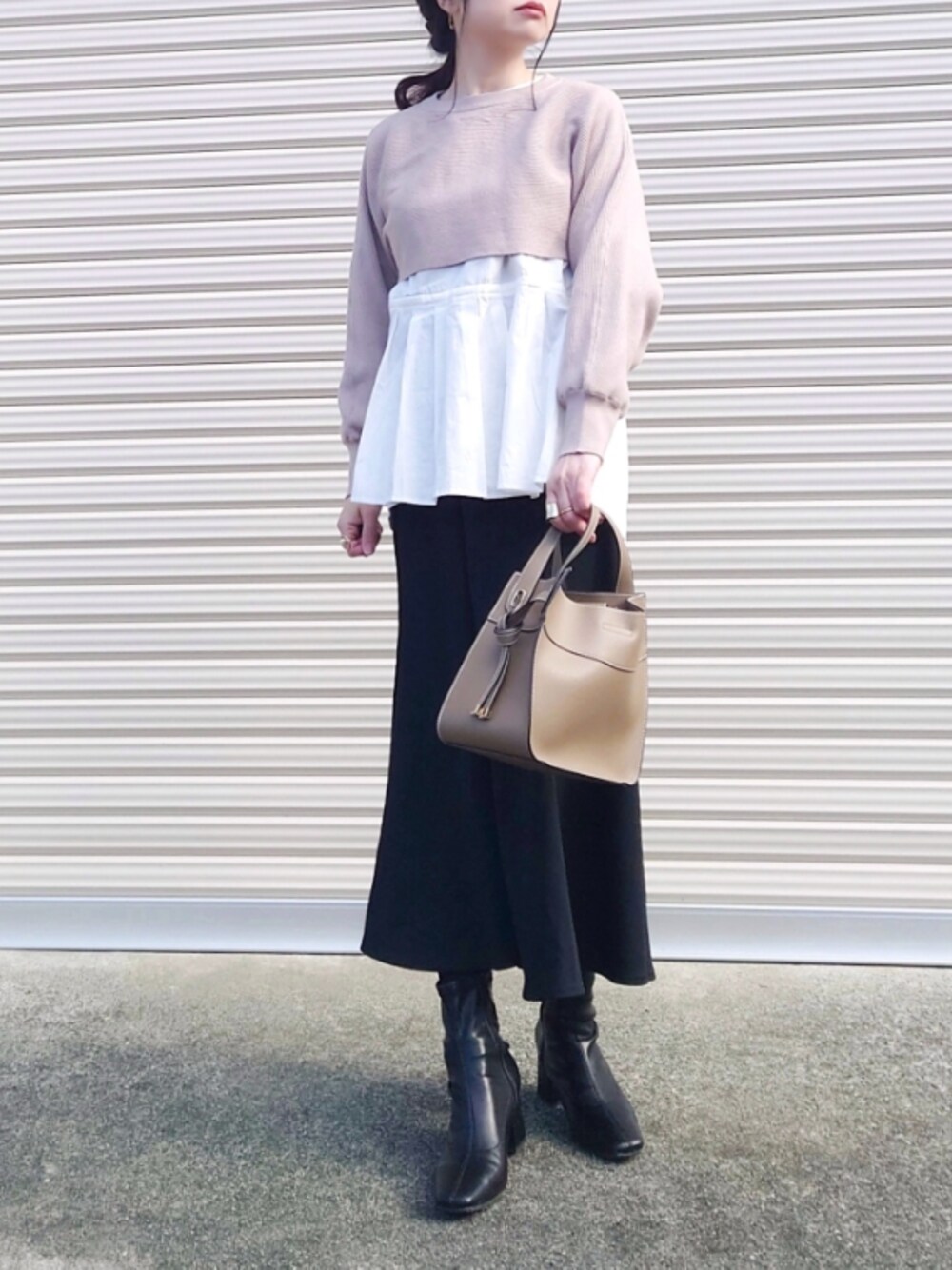 yume のニット/セーター「ブラウスコンビショートニットプルオーバー」を使ったコーディネート
