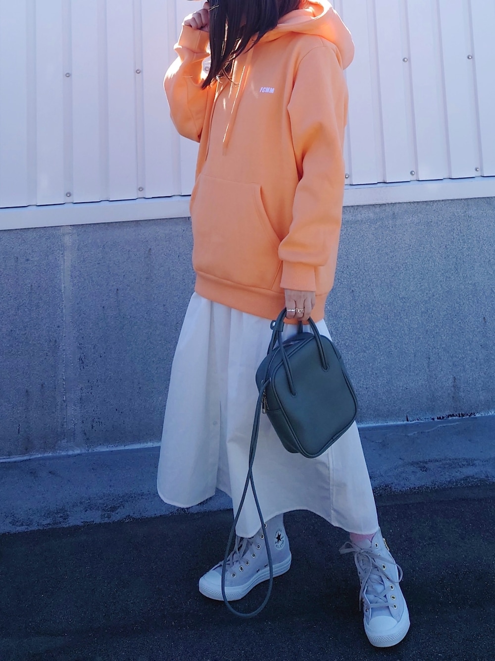 この春は綺麗なカラーを使ったアイテムが多くて見ていて楽しい♪ オレンジの色味に💓惹かれたFCMMのクラブエッセンシャルフーディー❤︎ 胸元にFCMMのロゴが入り ´‐ ゆるっとシルエットに大きめなフード、ポケットデザインもかわいい♡ 男女兼用で着用できます。 私はMサイズにしました𓂅 この日は天気が良かったので買い物のあと海まで🚗 風が強すぎてあまり写真が撮れなかったけど オレンジの色味がきれいに見える写真を4枚目に載せています。 見てくださってありがとうございます。 Instagram▷▶︎▷ yume___to