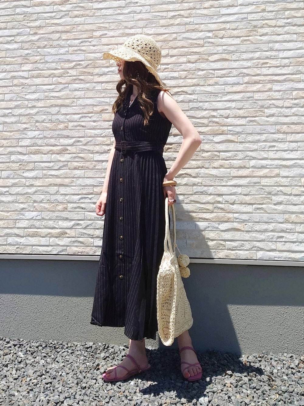 yume のシャツワンピース「サイドプリーツ開襟シャツワンピース」を使ったコーディネート