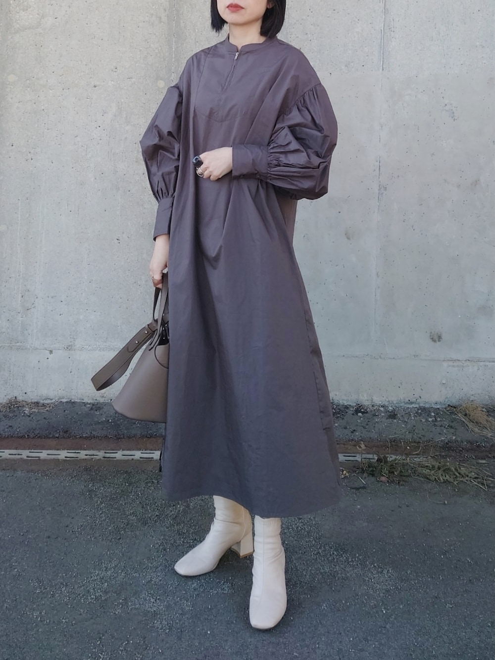 yume のワンピース「ハーフジップボリュームスリーブワンピース」を使ったコーディネート