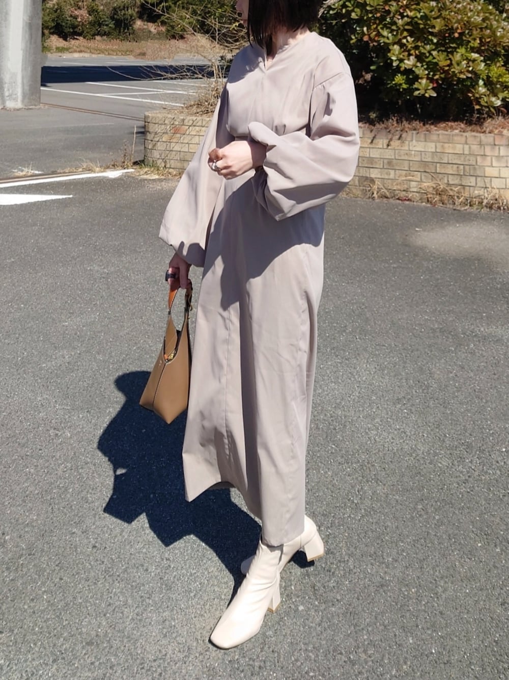 yume のワンピース「ウエストタックボリュームスリーブワンピース」を使ったコーディネート