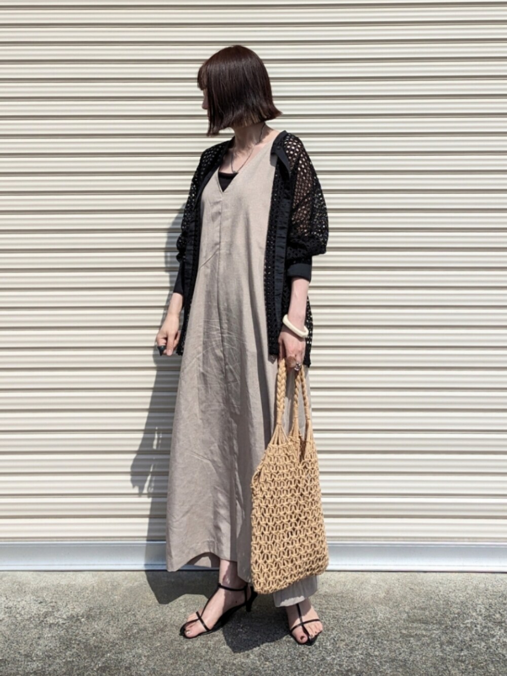 ご覧いただきありがとうございます。 black×beige 抜け感のあるmivialocaさんの メッシュバンドカラーシャツ𓂃 𓈒 ワンピースにサッと羽織るのも好き☺︎ Instagram yume___to