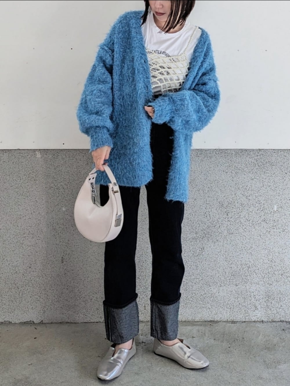 yume のデニムパンツ「カラーステッチロールアップハイウエストデニムパンツ」を使ったコーディネート