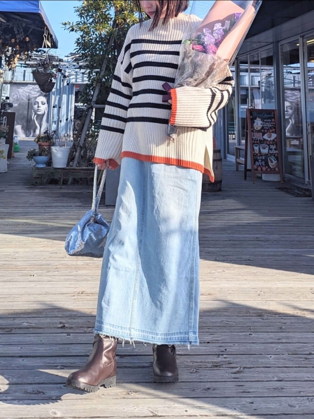 yume のスカート「【S-LLサイズ展開】オールシーズン活躍。バックスリットデニムロングスカート」を使ったコーディネート