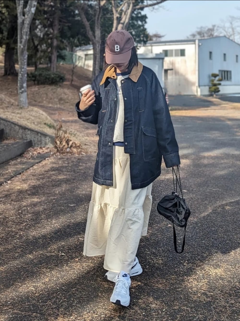 yume のデニムジャケット「2way 襟コーデュロイルーズデニムカバーオール」を使ったコーディネート