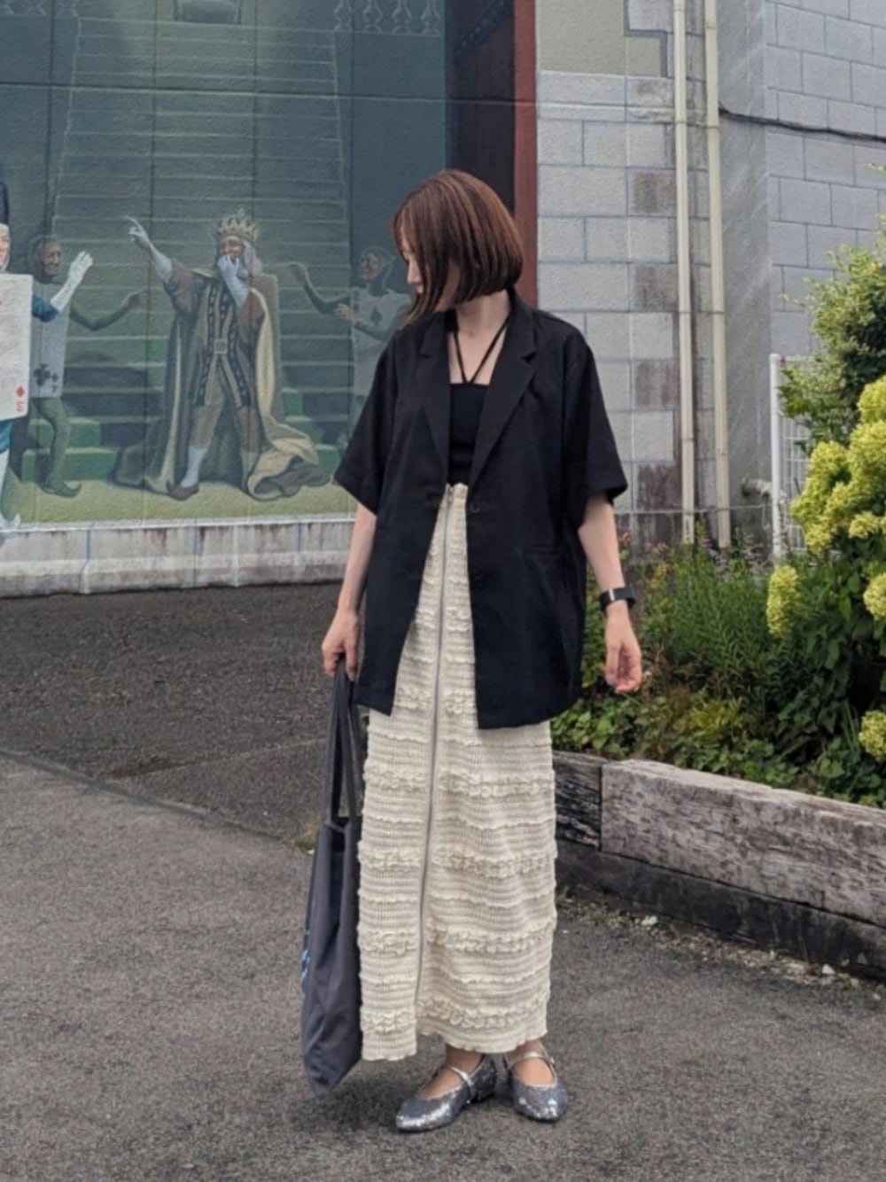 yume のテーラードジャケット「[セットアップ対応]リネンライク半袖テーラードジャケット」を使ったコーディネート
