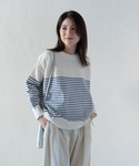 yume のニット/セーター「クルーネックボーダーニットトップス / プルオーバー レーヨン混ニット ゆったりサイズ 保温 ナチュラル フレンチ 大人カジュアル レトロ ヴィンテージ シティガール オフィスカジュアル」を使ったコーディネート