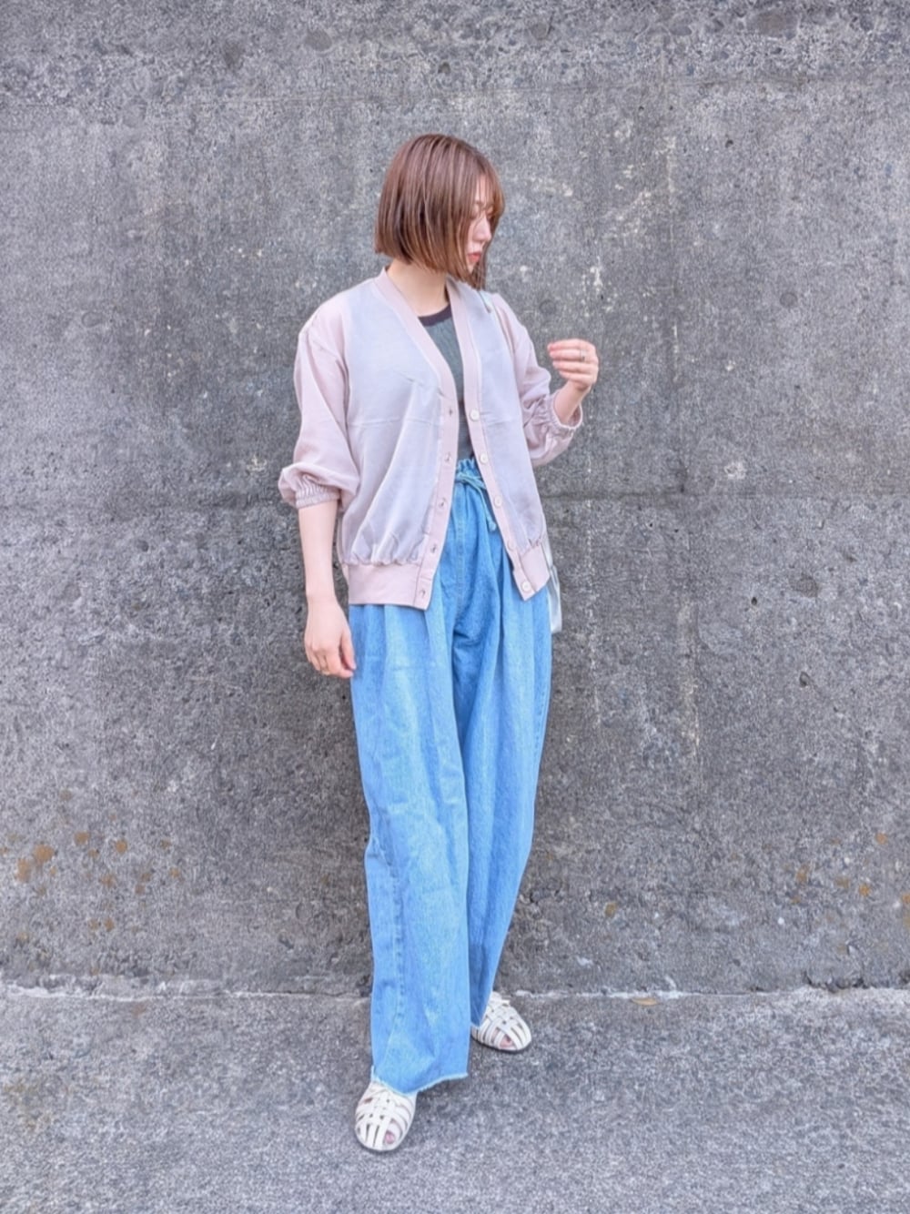 InRed6月号掲載 ikkaシアーカーデブルゾン (ダークベージュMサイズ) シアー素材のカーディガンブルゾン。透け感がありサッと羽織るだけでこなれ感✨ デニムはnotch.さんとKRさんコラボのもの。 ゆったりしたシルエット、軽やかな素材感で暑い日も快適に履けます。 【notch.by KR】タックボリュームデニムパンツ (ブルーTMサイズ) Instagram @yume__to