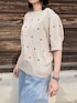 yume のニット/セーター「夏 にぴったり。ドット柄ジャガード半袖トップス」を使ったコーディネート