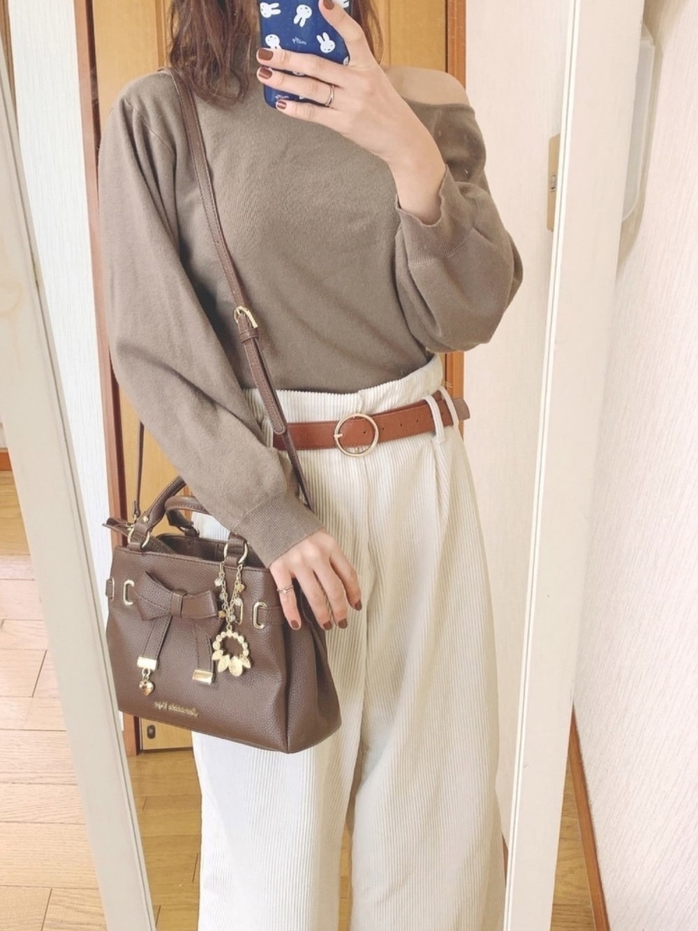 肩あきニット欲しくてお買い上げ ☝️🏻 今の時期は少し寒いけど もう少し暖かくなったら着たい‪‪☺︎‬ 最近ブラウンコーデ多すぎ*̣̩⋆̩*
