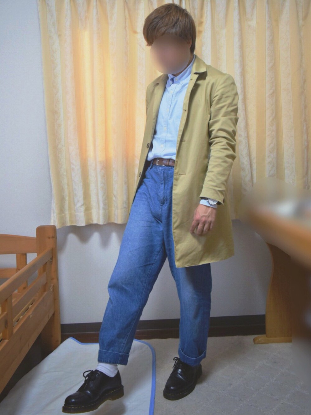 どーも!おはこんばんには! 今日はQさんのコーデにちょっと似たようなのにしてみました!笑 いつも見てて、オシャレで写真もうまくて自分の憧れ的な人です! デニムシャツをタックインして、脚長効果ですね。チビには必須です笑 中はデニムオンデニムで、アウターはベージュのステンカラーコートでキレイめにまとめてあります。 よかったらいいねやお気に入りよろしくお願いします! フォローも気軽にしてくださいね! それではバイバーイ✋️