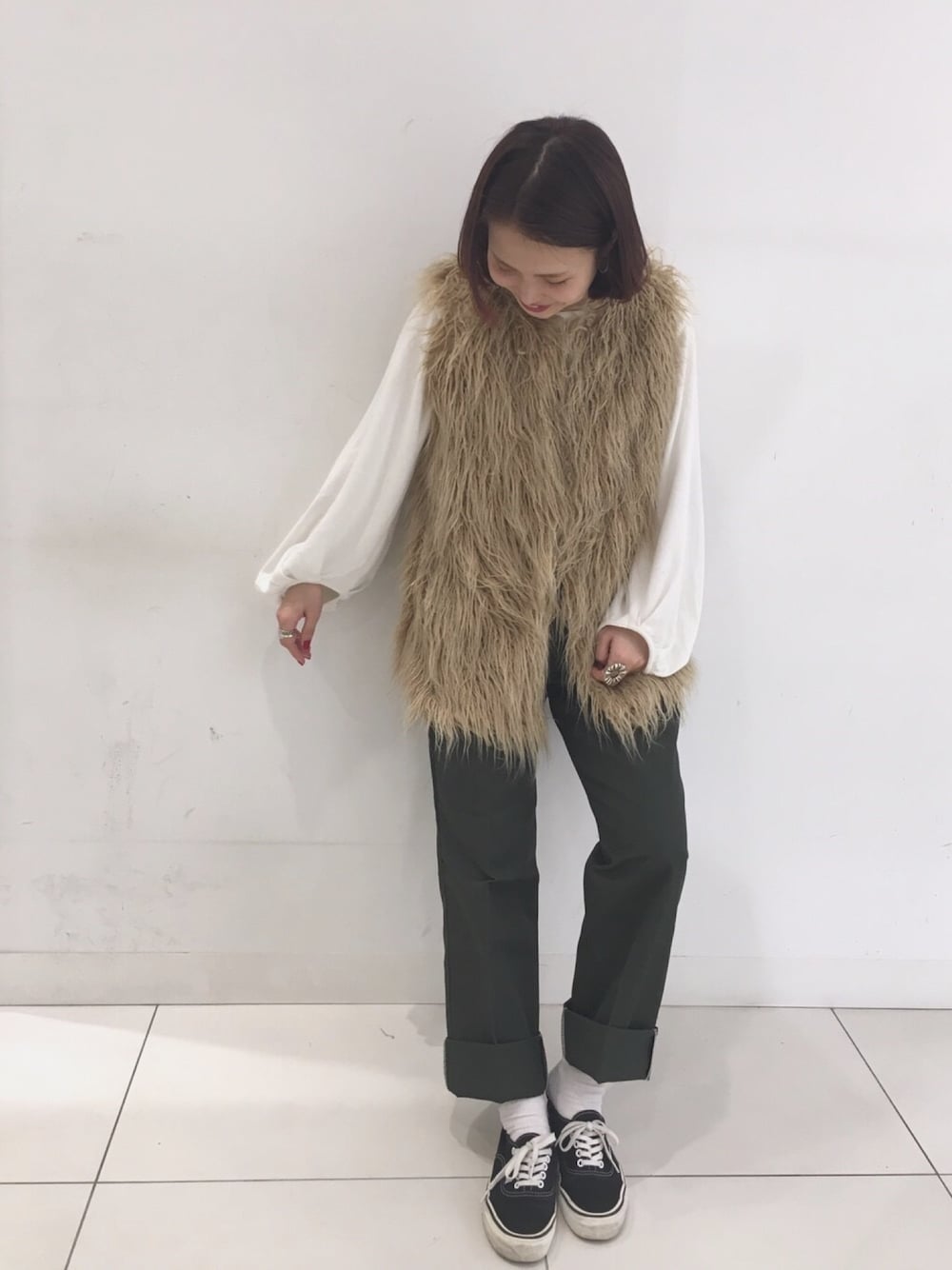 maneのその他アウター「ファーベスト」を使ったコーディネート