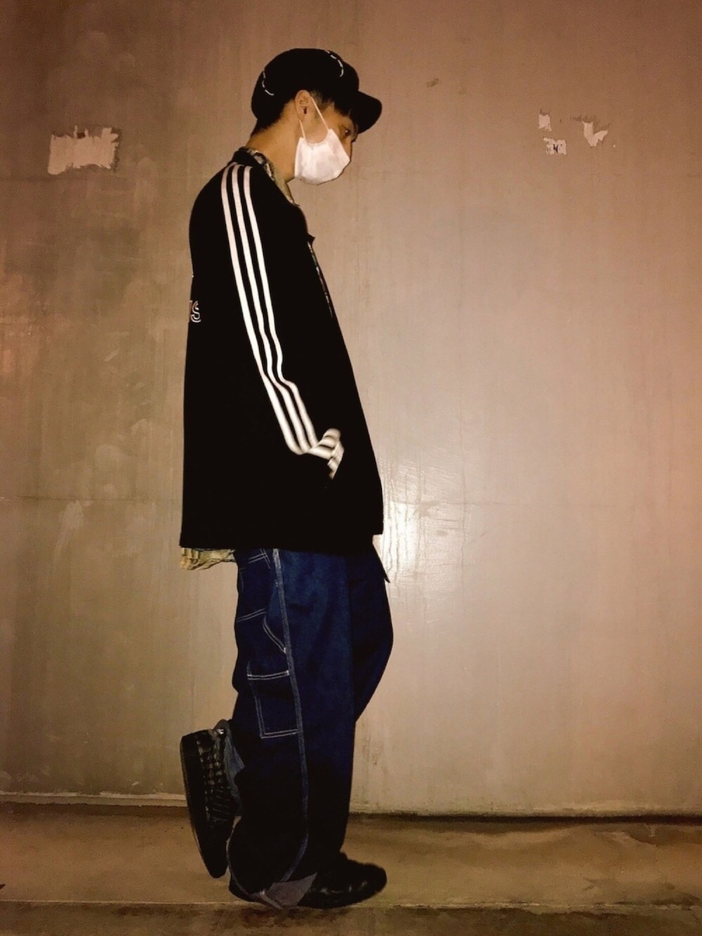 同じ帽子ばかり使うの辞めたい 就活中のためスーツが多くて、久々にコーデを組みました 横から見たこういうシルエット大好きです 前からの立ち姿うまく撮れなかったのでこんな感じで adidasのジャージはたぶんブート 笑