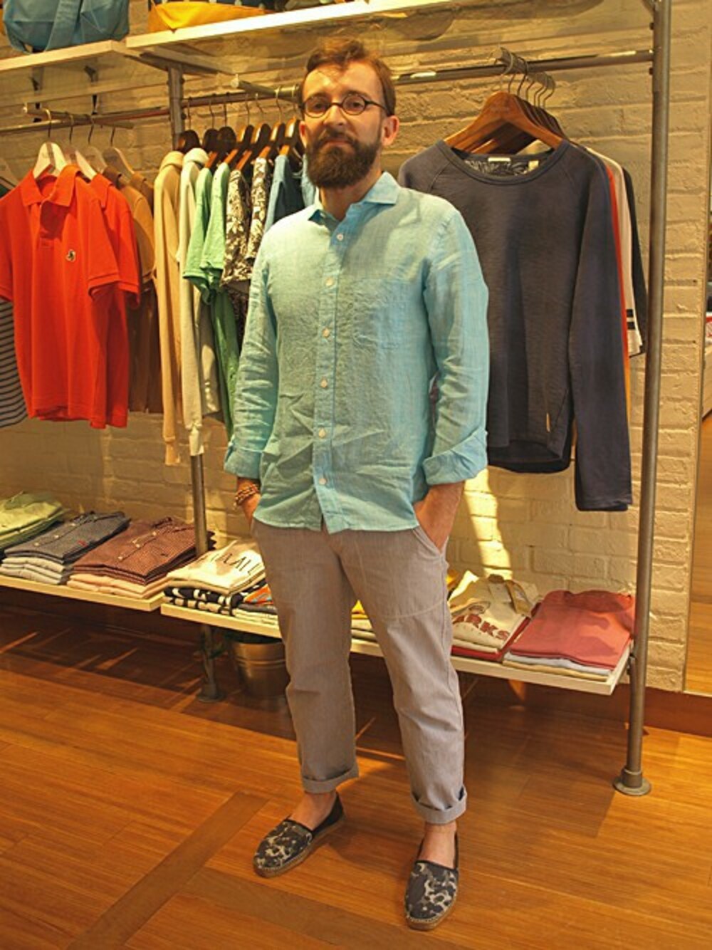 鮮やかなカラーと着心地の良い柔らかな風合いのリネンシャツをメインに夏らしさを意識したコーデにしてみました。シンプルになり過ぎない様にカモフラ柄のシューズでアクセントを。 ボトム次第で雰囲気も変えられる着回し力もオススメです。