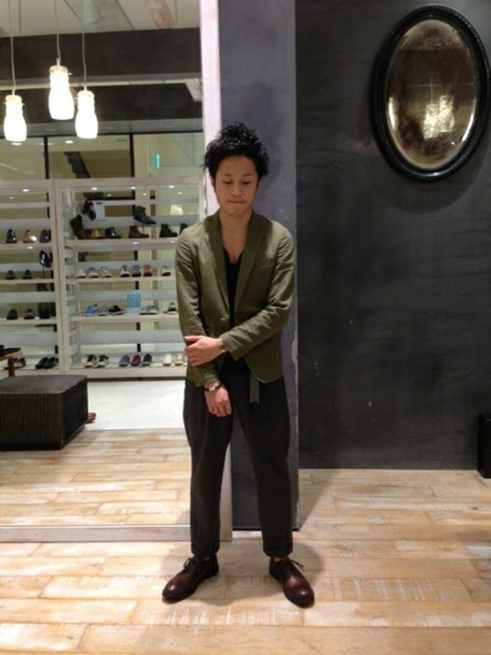 今の時期からの買い物は夏だけではなく、秋にも意識を置きましょう。 より長い時期ガシガシ履いて欲しいので僕はこのシューズを提案します。 焦がしを加えたダークブラウンに羽はブラックでシックにまとめています。 スラックス合わせで上品に履いて頂きたいですね。