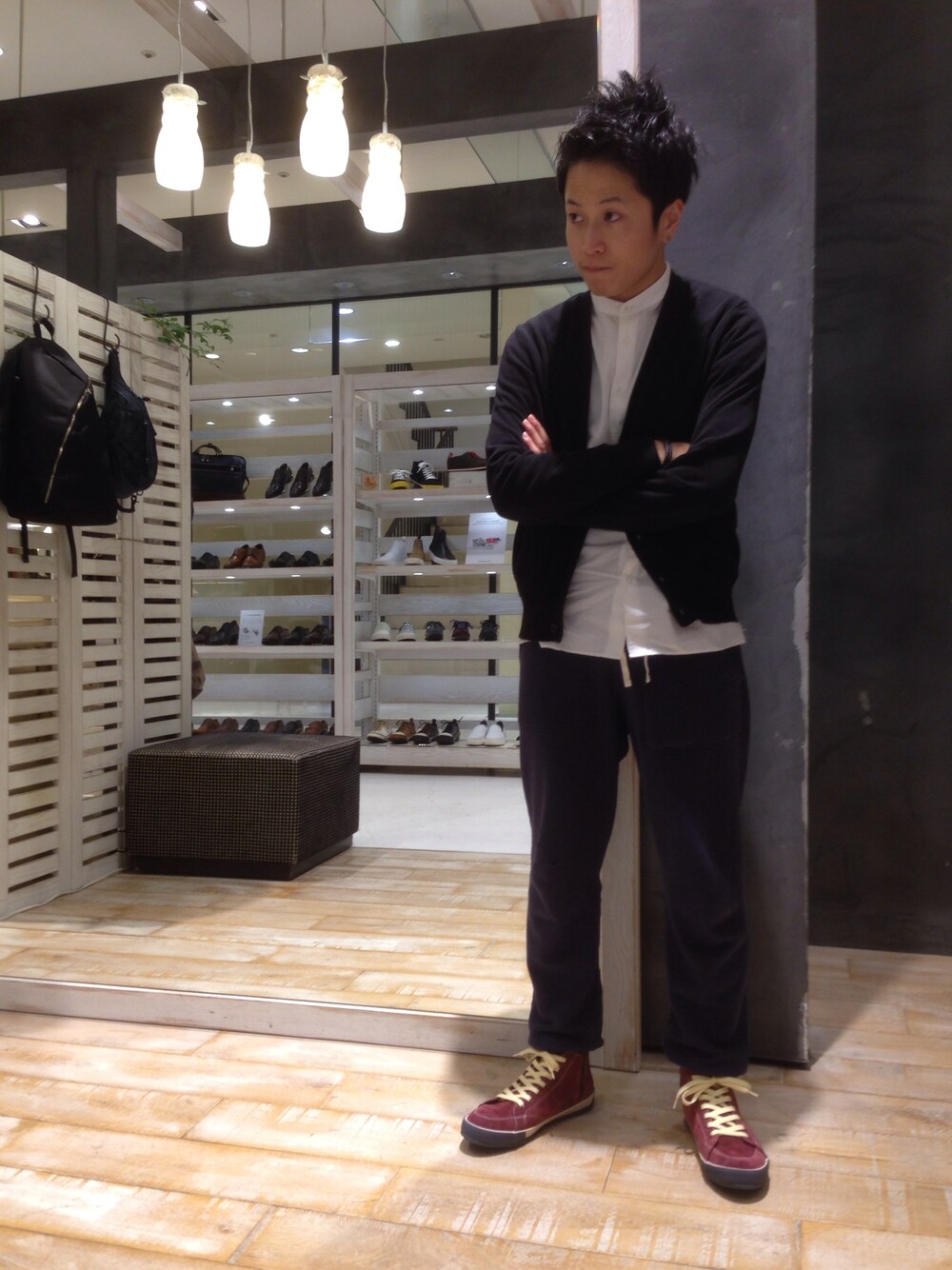 最近スラックスにスニーカーを合わせるのが好きなんですが、今回は休日意識でスウェットパンツ合わせ。 程良くラフで動きやすさも確保。 これで紅葉見に行っちゃいますか。