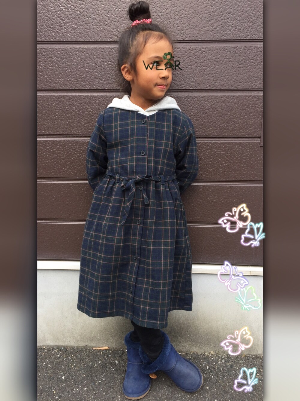 トップス、ワンピース...130cm パンツ...120cm パーカー重ね着できるくらいゆったり着れるワンピース。 前歯。。。まだ取れない_:(´ཀ`」 ∠):