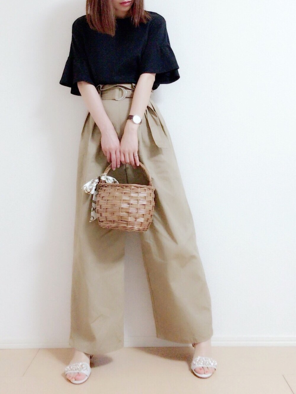 おはようございます💗 去年のLOWRYSFARMのトップスにGUのワイドパンツ✨ JELLY BEANSで新しくセレクトしたサンダルが届きました🙈💗フラワービジューがアクセント❤️ Instagram→miku.wearよろしくお願いします🙏💗 いつもご覧いただきありがとうございます❤️❤️❤️