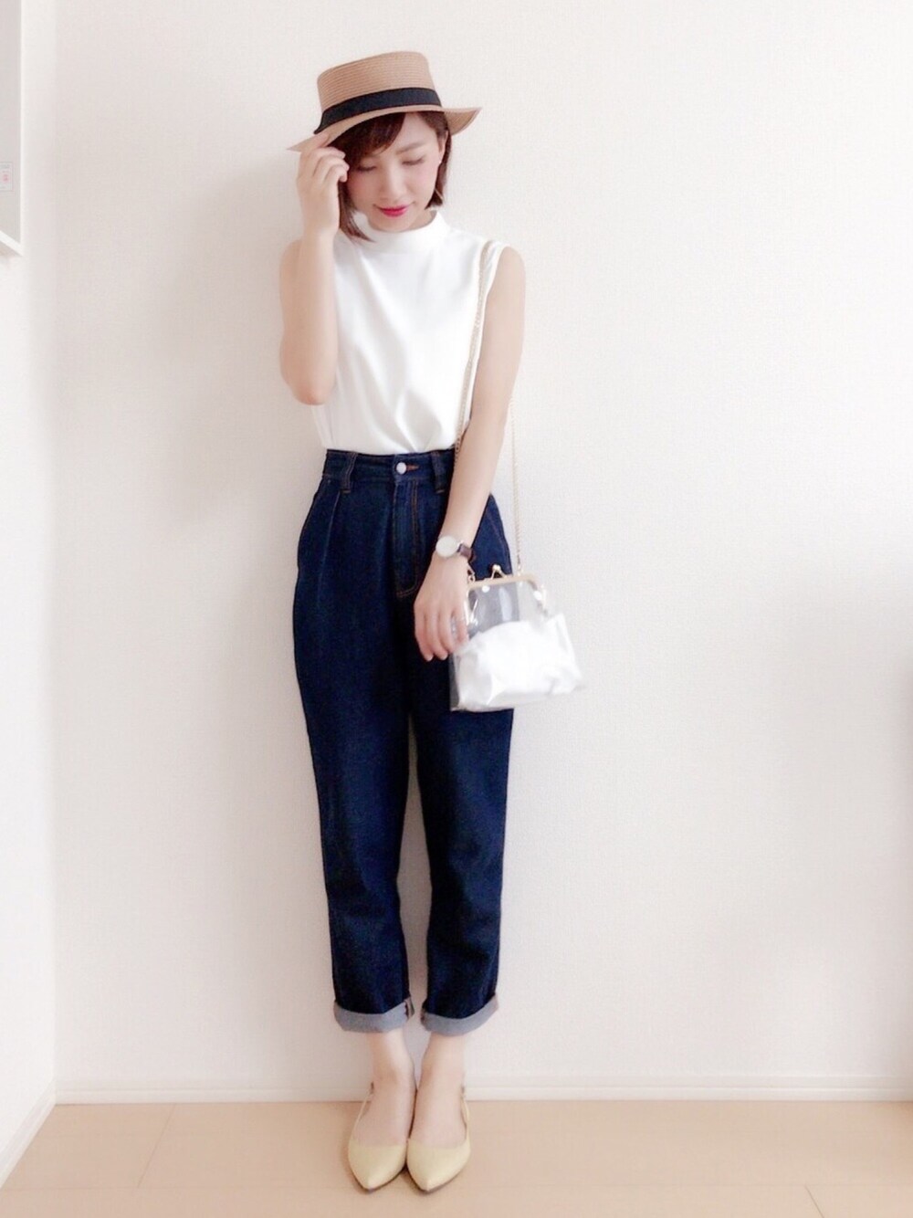 こんばんは💗 シンプル&プチプラコーデ💗 UNIQLOのトップスにGUマムジーンズ✨ DAISOのカンカン帽とクリアバッグで夏っぽく✨ JELLY BEANSのイエローパンプスは形が綺麗でフラットなので履いてても疲れません✌️✨ Instagram→miku.wearよろしくお願いします🙏💗 いつもご覧いただきありがとうございます❤️❤️❤️