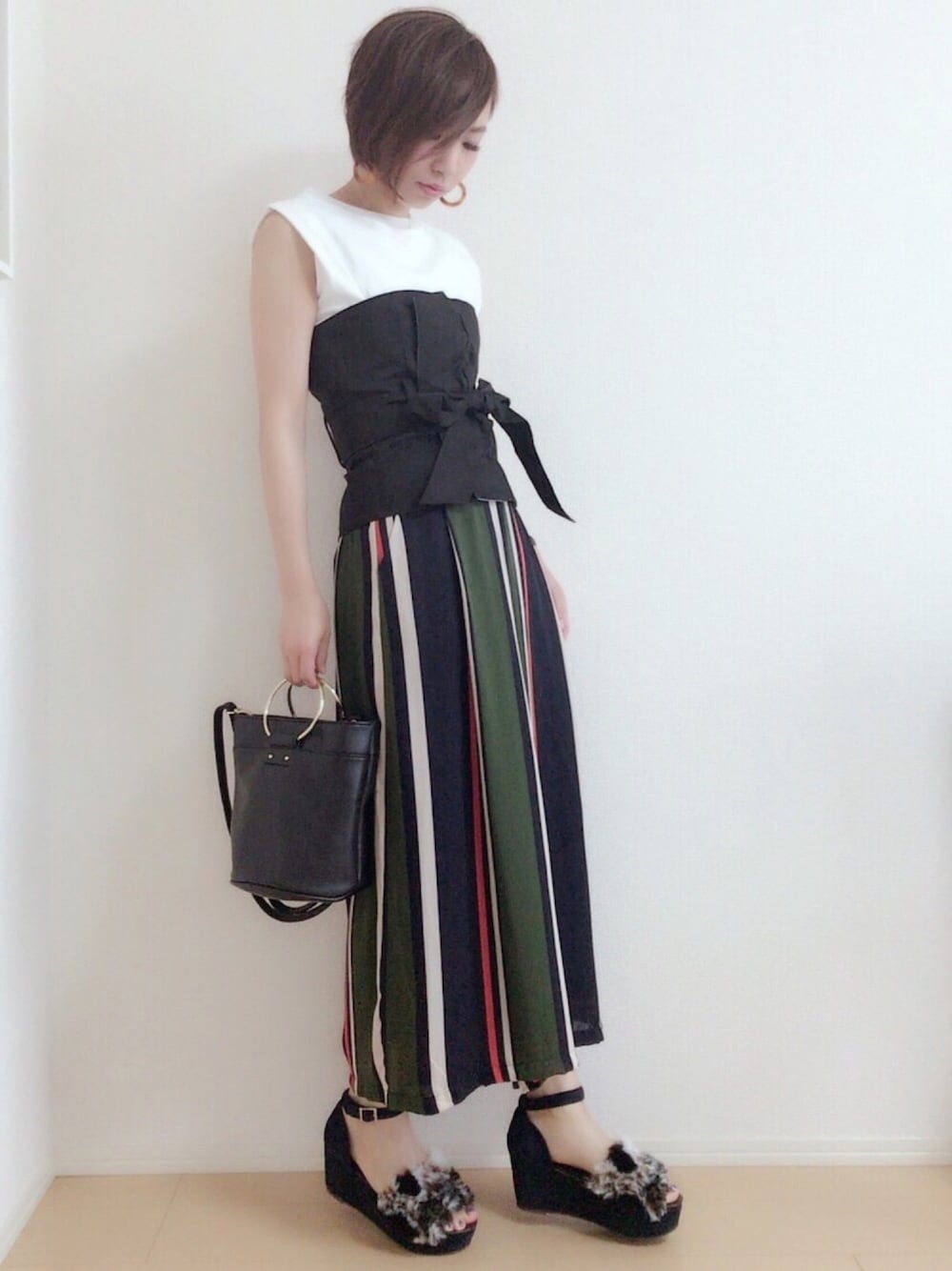 おはようございます💗 HAREのビスチェのコーデ💕 ほんと可愛い😍 マルチストライプのスカンツ合わせました✨ JELLY BEANSのファーサンダルは去年のもの💗もう完売されてますが、今季のファーサンダルたちも可愛い❤️❤️❤️ Instagram→miku.wearよろしくお願いします🙏💗 いつもご覧いただきありがとうございます❤️❤️❤️