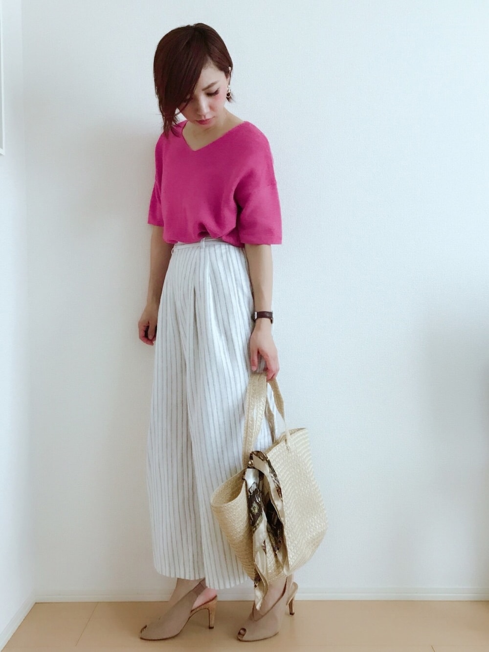 おはようございます💗 ピンクのトップスsaleでgetしました✌️✨GUのワイドパンツに合わせて💕 JELLY BEANSソンシックトーキョーのサンダルはコルクのヒールが夏っぽい💗形も綺麗で履きやすいです❤️ Instagram→miku.wearよろしくお願いします🙏💗 いつもご覧いただきありがとうございます❤️❤️❤️