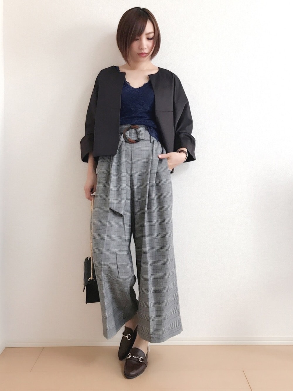 MIKUのノーカラージャケット「ノーカラーフレアジャケット 」を使ったコーディネート