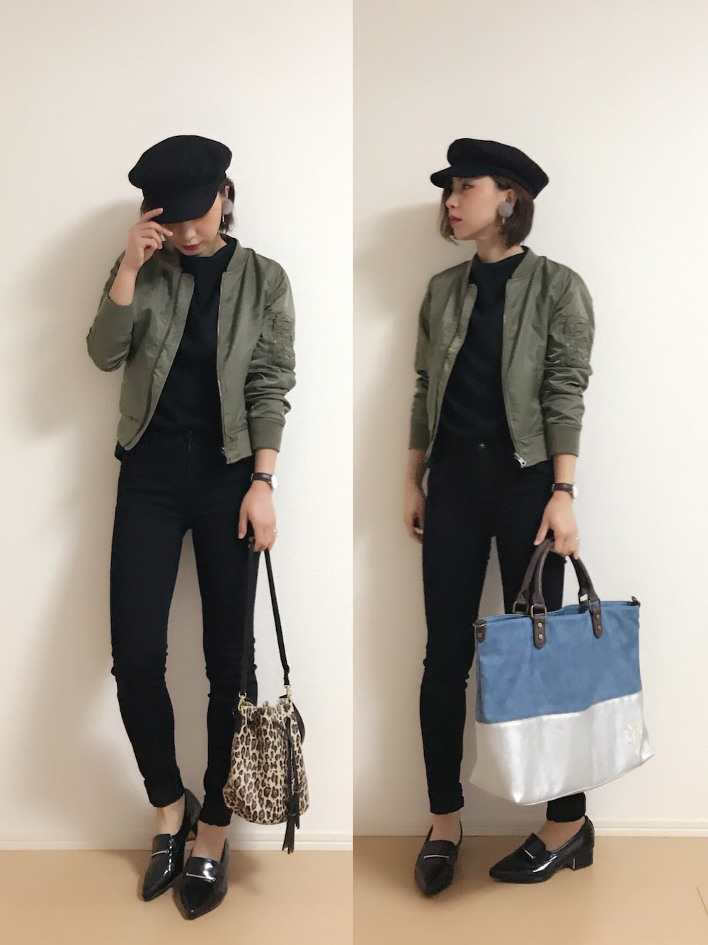 こんばんは♡ ブラックにカーキ❤️ バッグは2通り載せました✌️ U.SPOLOASSN.のトートバッグ💕 Instagram→miku.wearよろしくお願いします🙏💗 いつもご覧いただきありがとうございます❤️❤️❤️