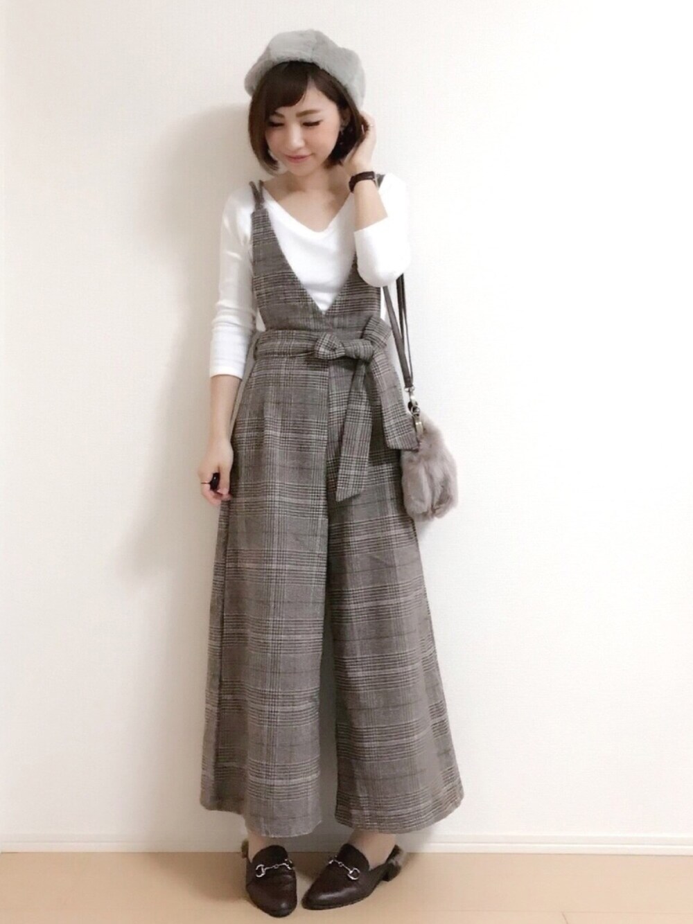 おはようございます♡ セレクトショップのroomoonさんのグレンチェックのオールインワン☺︎☺︎☺︎\❤︎/思ってた通り可愛い♥ 3COINSのファーベレーも☺︎☺︎☺︎ Instagram→miku.wearよろしくお願いします\❤︎/ いつもご覧いただきありがとうございます☺︎♡