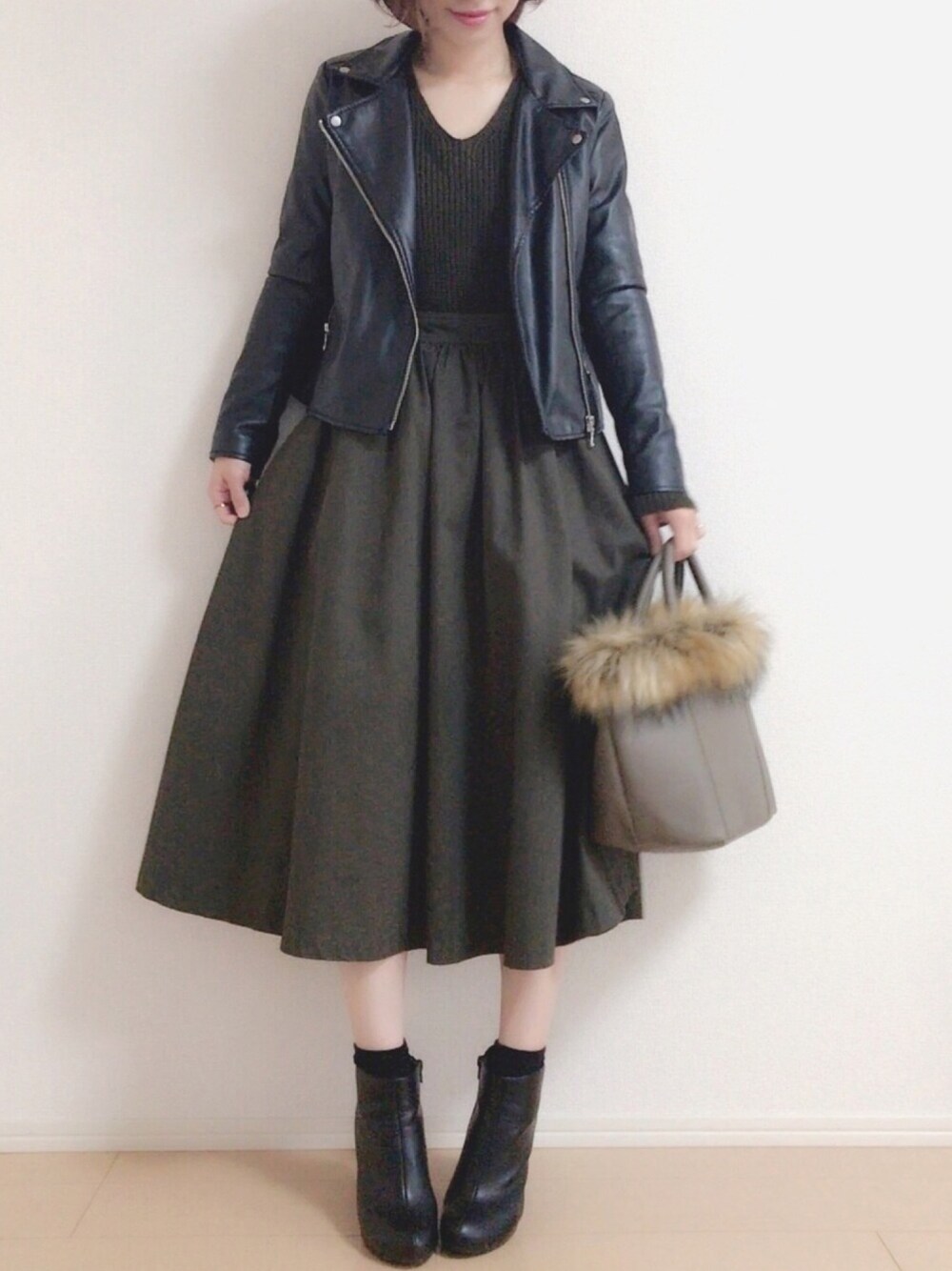 おはようございます♡ カーキのコーデにライダースジャケット☺︎☺︎☺︎ Instagram→miku.wearよろしくお願いします\❤︎/ いつもご覧いただきありがとうございます♥♥♥