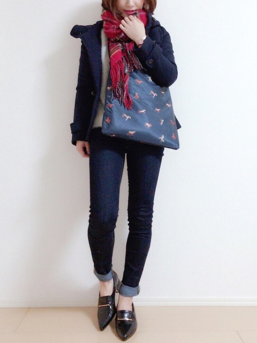 MIKUのストール/ショール「チェック柄大判ストール」を使ったコーディネート