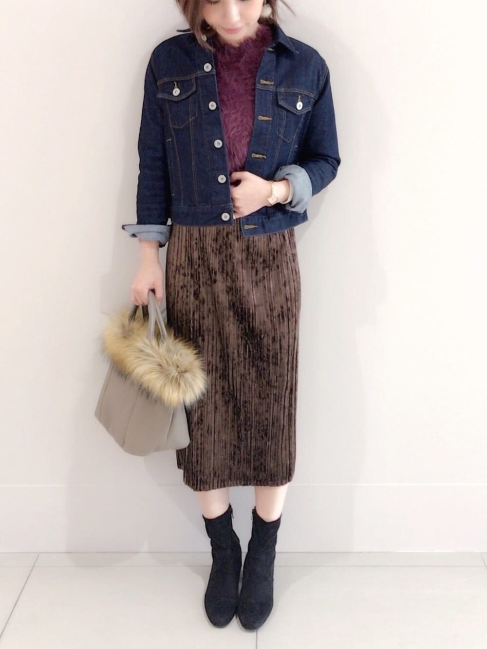 MIKUのデニムジャケット「CONE DENIM Gジャン/725333」を使ったコーディネート