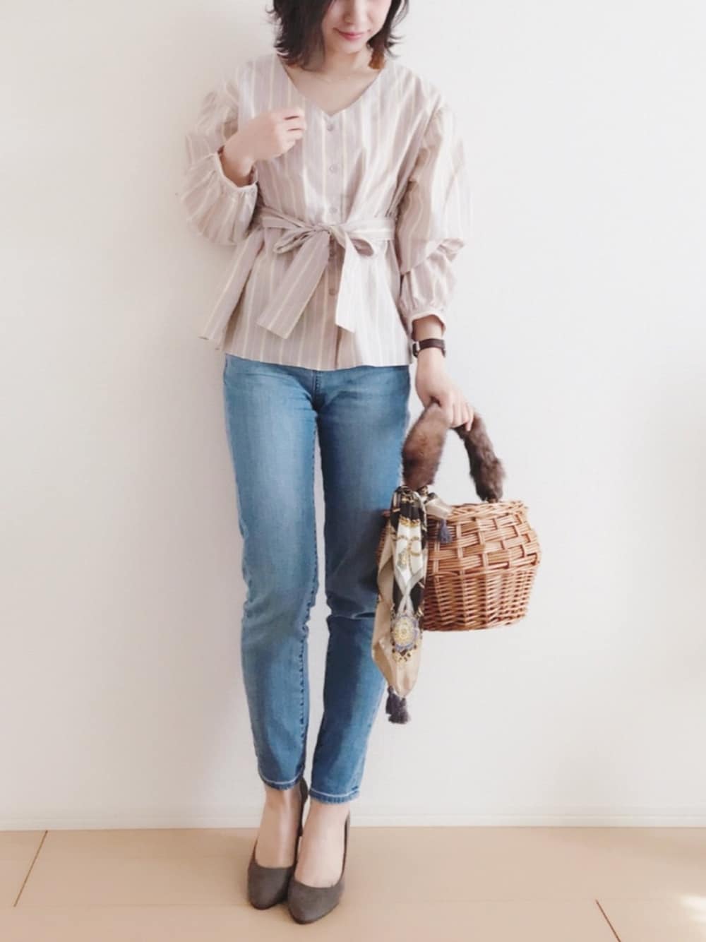 MIKUのシャツ/ブラウス「2wayボリュームスリーブブラウス」を使ったコーディネート