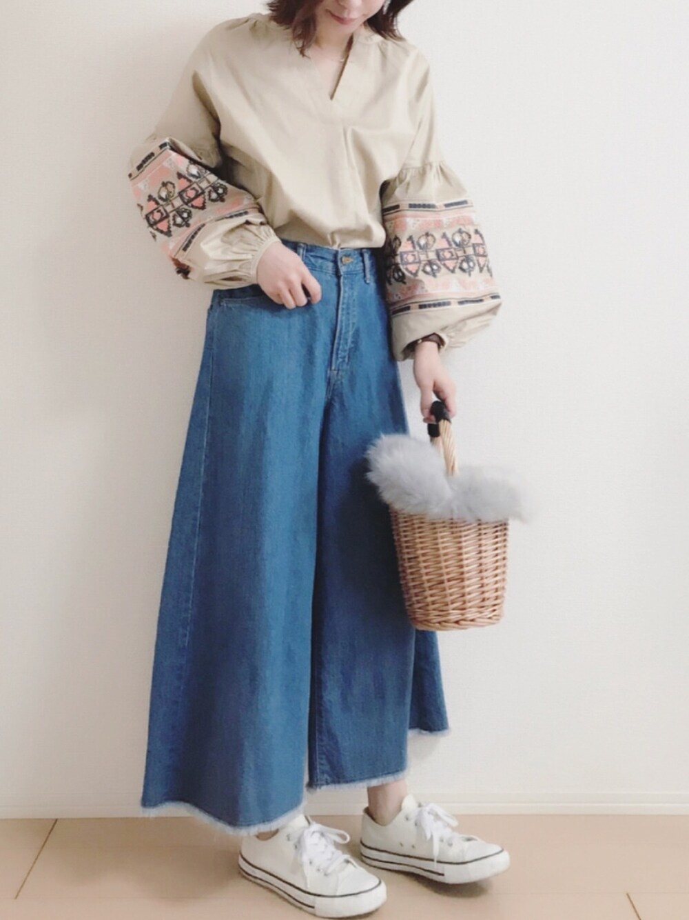 MIKUのシャツ/ブラウス「ランタン刺繍スリーブブラウス 」を使ったコーディネート