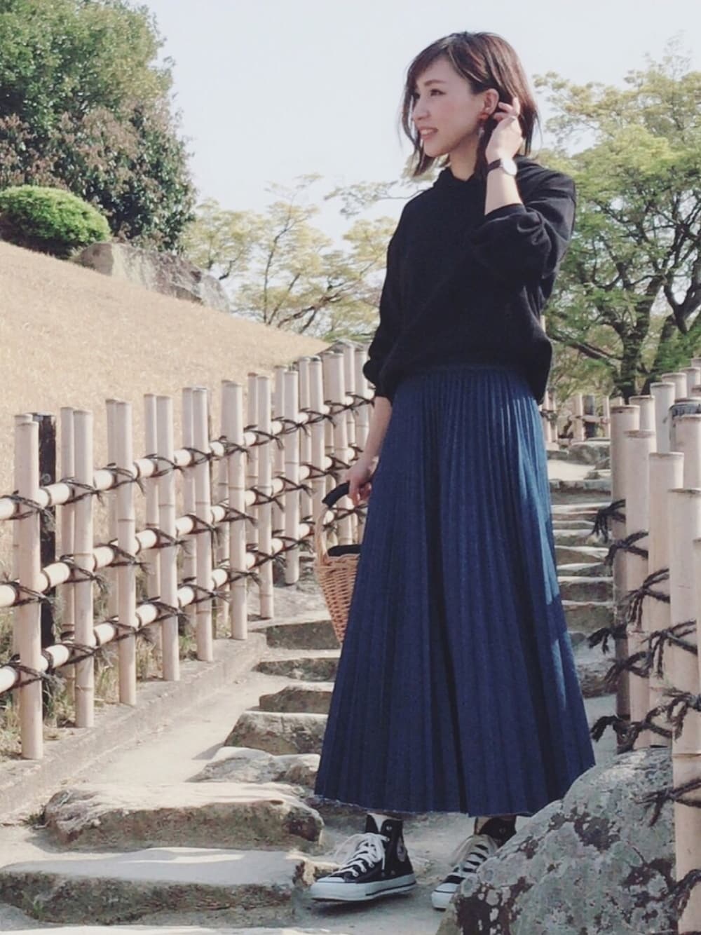 MIKUのデニムスカート「デニムプリーツロングスカート」を使ったコーディネート