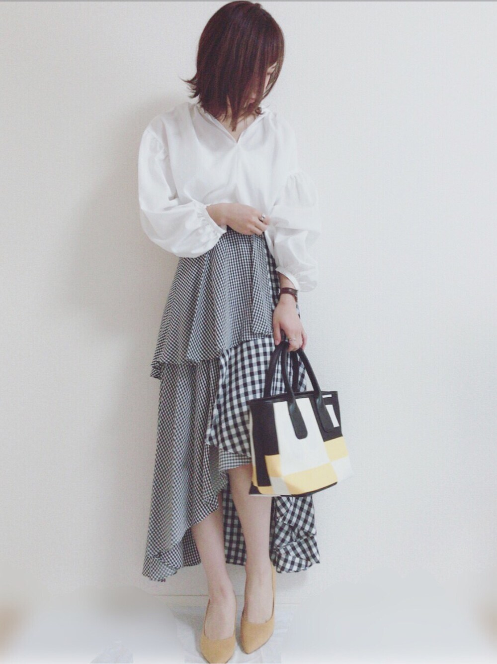 MIKUのシャツ/ブラウス「袖バルーンブラウス」を使ったコーディネート